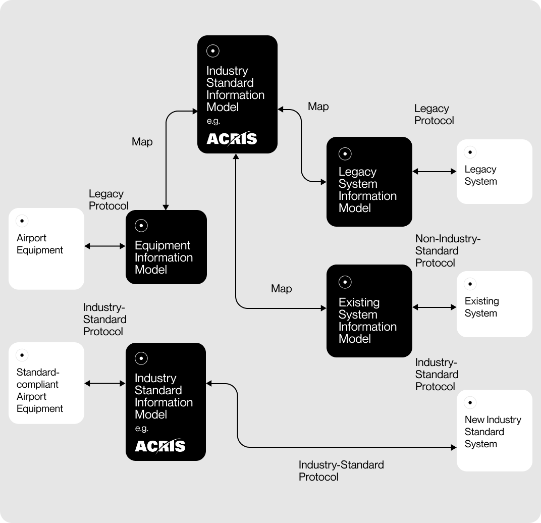 By adopting ACRIS, airports can harmonize data across diverse systems, enabling greater collaboration and future-proofing their IT landscape. A connectivity platform that allows the import and mapping of ACRIS data models to various information sources—from low-level equipment to legacy or proprietary systems—offers the ideal foundation for a smooth transition to standardized operations.